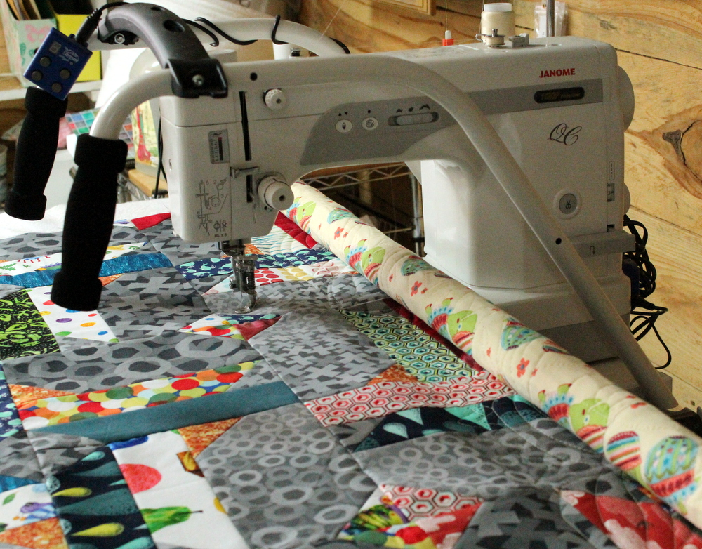 This quilt was for my girls’ ballet teachers’ new baby boy, Landry. Every Monday I’d be at ballet I’d watch Ms. Erin get bigger and bigger and I knew I had to get this quilt done and finished for her so she would have it before she had her beautiful bundle of joy. So I even quilted it myself! It was the perfect size for putting on my long arm frame and it didn’t take long before I had it all quilted!