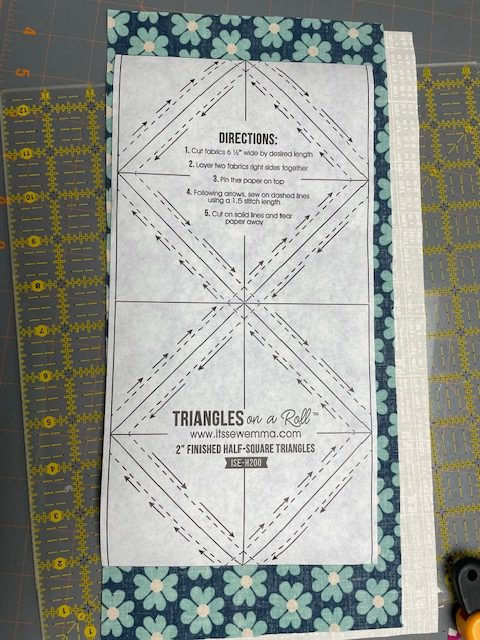 This month we were asked to make two of Block 1 which means 64 half square triangles (32 in each block). I knew this would be the perfect opportunity to give the Triangles on a Roll a try. I don’t typically use papers to sew half square triangles but these truly made making so many super fast!