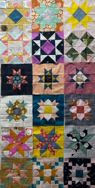 Block 11 is the Mosaic Star. It’s bananas how different the block can look depending on what value of fabric you put where.