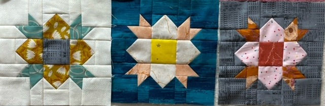 These are the three blocks made for Block 10: Ribbon Star. I tried to mix up the light vs. dark backgrounds.