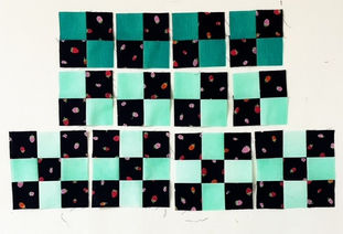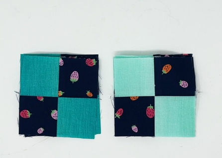 In the end you’ll have eight 3.5″ x 3.5″ four square patches and four 5″ x 5″ nine patches.