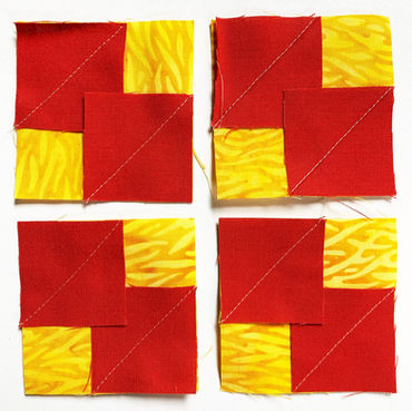 Stitch on the diagonal line drawn. Do this for all four Fabric 6 squares.