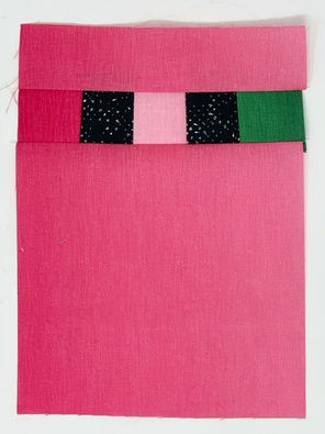 Sew the top three sections together and the bottom three sections together. Press towards the non-pieced fabrics.