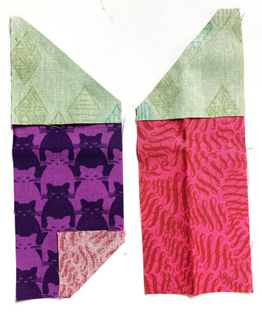 Sew the two rectangles together. Press towards the Fabric 5a rectangle.