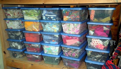 The first time I sorted my scraps, back in 2012 they all fit in the smaller clear plastic tubs.