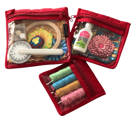 This 3 Piece Craft Pouch is perfect for all your creative needs! I don’t know about you but I’m always bringing projects with me to work on while I’m watching my kids play games or I’m waiting for an appointment. These three bags will help me organize my needles and threads separate from my fabrics for English paper piecing, from the glue sticks and buttons I may be using.