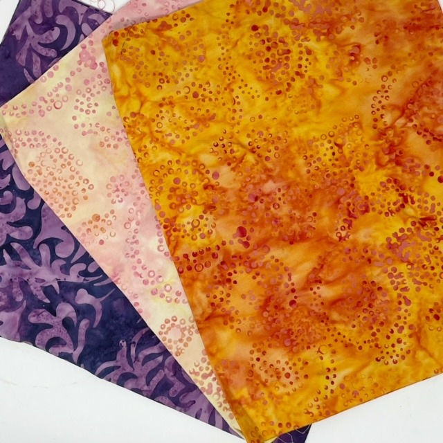 3 beautiful fat quarters of fabric – Mandala in Jelly, Dot Rings in Sherbet, Dot Rings in Nasturtium!
